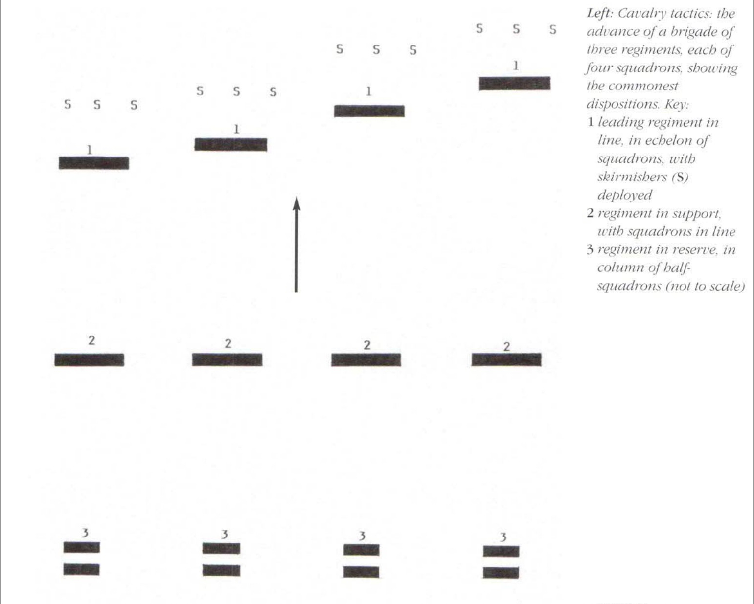 2)騎兵大隊の横隊隊形は、2ヶ中隊が横に間隔を置いて並ぶ。