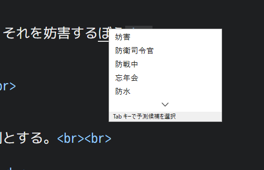 3)漢字変換時に候補の文字が入力文字を隠すような表示になる。(下図参照)