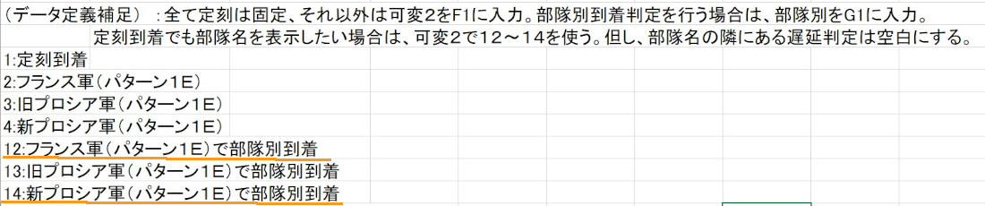 ゲーム・シナリオ毎に違う増援部隊の到着時刻表を作成する。