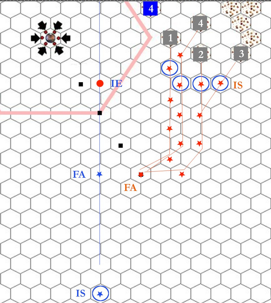 IEが捕獲位置、FAが最終進入位置(全ルート共通)、ISが作戦開始位置である。