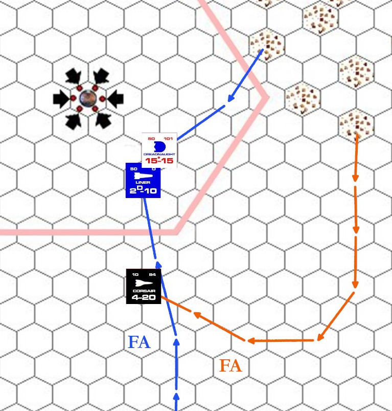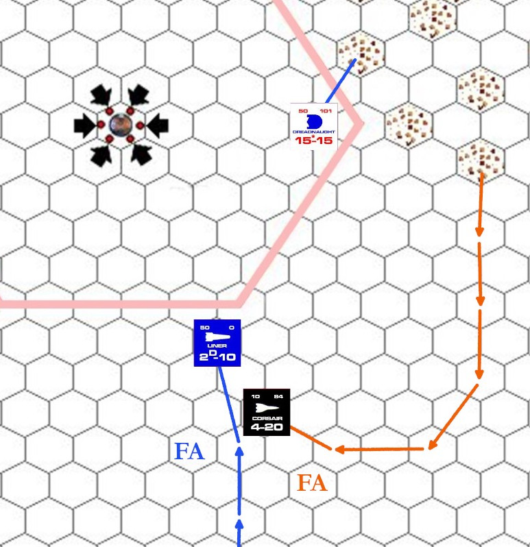 客船は火星へ向かう。ドレッドノート艦は加速し、火星よりに進路変更した。(着陸を視野に入れる)