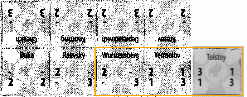ATOのバタイユゲームLa Bataille de Kulmでは、下図枠内のようにトルストイ中将の評価が高く、