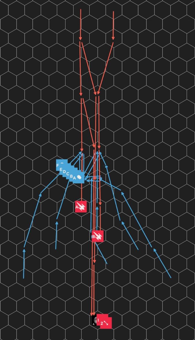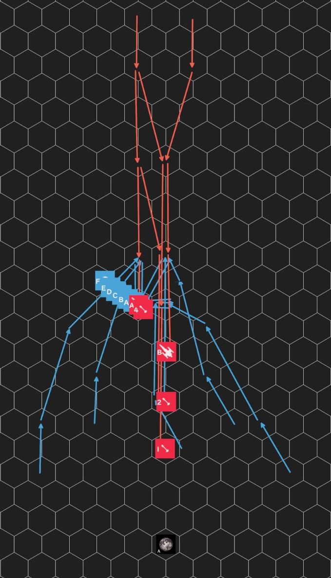 ・防御側は偵察艦の位置に集結し、偵察艦とミサイル4を砲撃した。