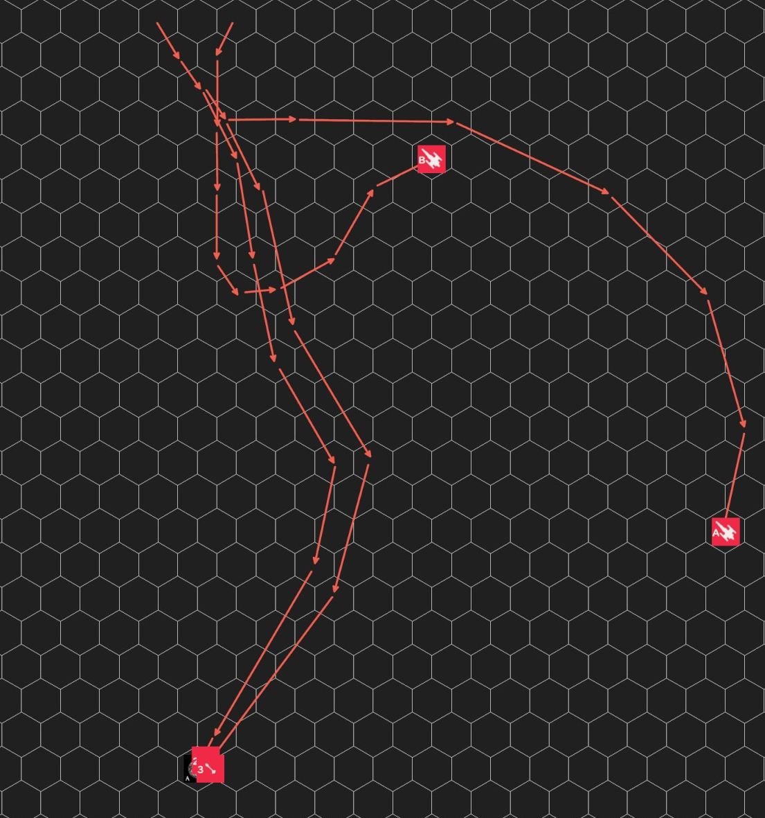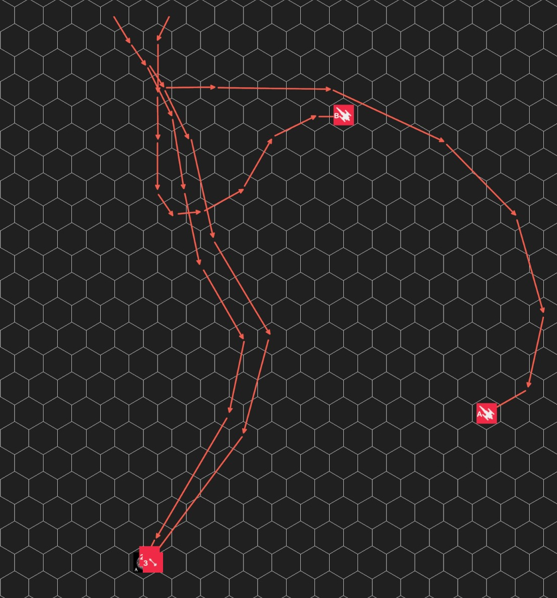 ミサイル2は目標1HEX手前まで到達し、ミサイル3は目標に命中・爆発した。