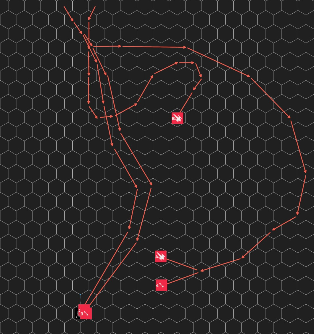 ・攻撃側は偵察艦はミサイル発射したので、帰投する。武装商船も合流中。