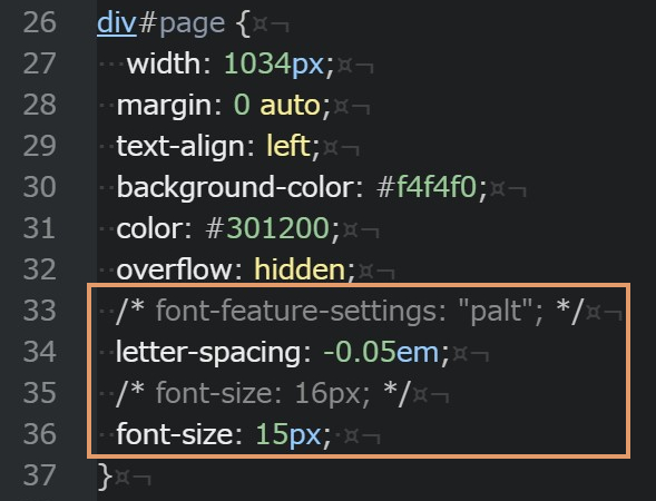 ・文字間隔の指定をfont-feature-settingsからletter-spacingに変える。