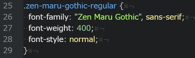 CSSで下図のようにfont-familyの優先フォントをZen Maru Gothicにする。