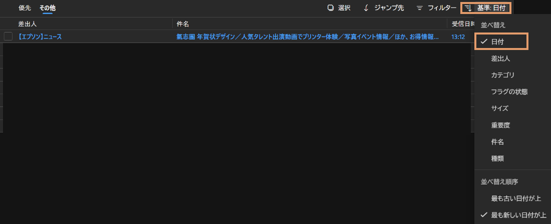 下図のように右上の基準・差出人をクリックして日付を選択する。