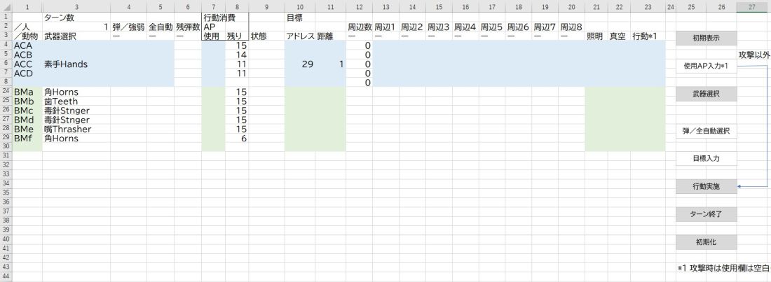 ・アドレスには敵の名前がある行番号、距離は敵までのマス数。