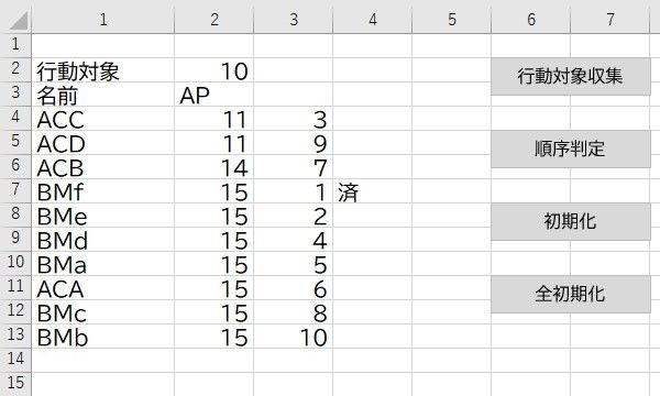 行動順画面(ord)にも動物fの4列目に済の表示が出る。(下図)