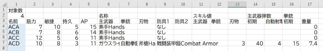 乱闘は不要(近接武器は刃物で十分な為)なので何も入力しない。