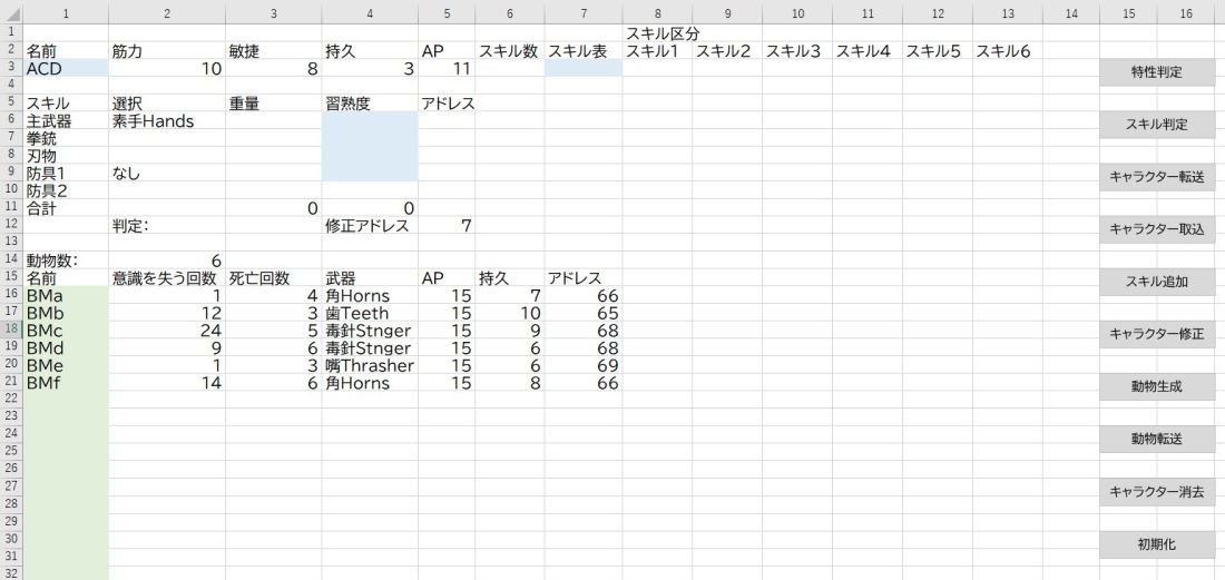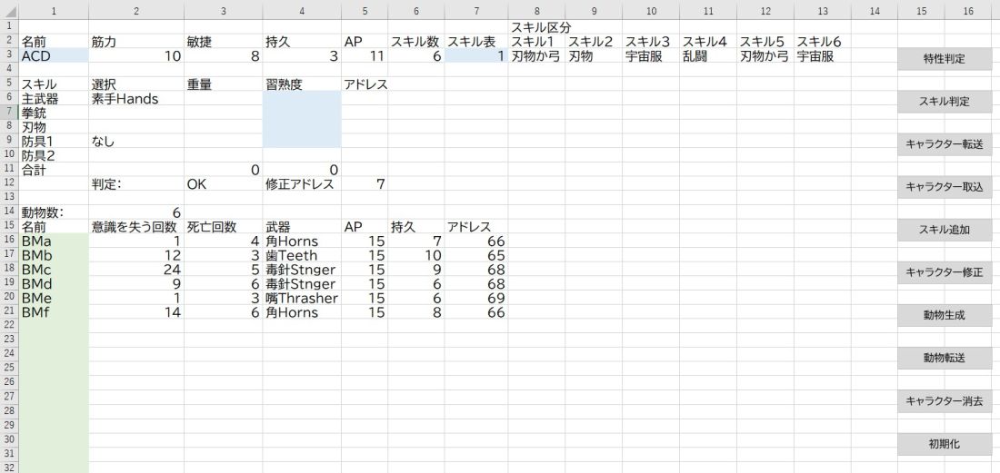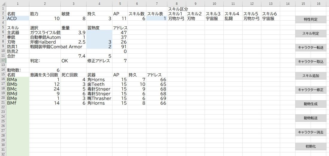 上記を選択してスキル判定を押すと重量を計算し、筋力以下ならOKとなる。(下図)