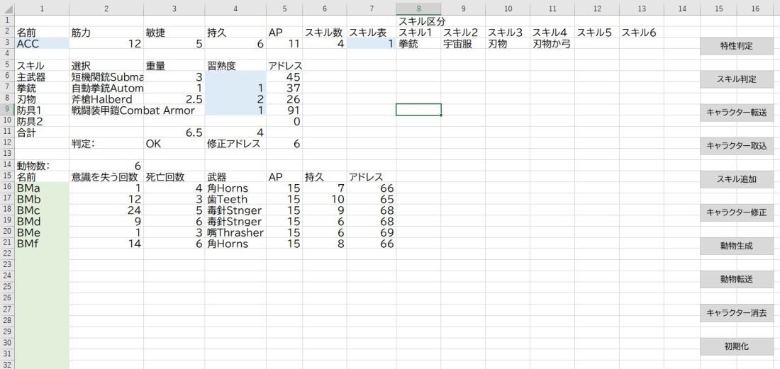 ・乗員Cは装備を取り出し、乗員ABの間に入る。装備とスキルは以下の通り。