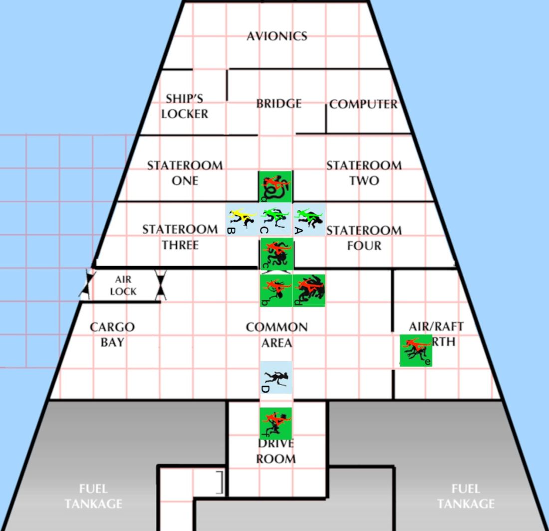 ・双方が攻撃し、乗員Dが動物dを斧槍(狙った攻撃)で死亡させ損傷なし。