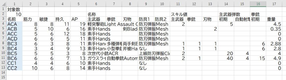 ・賽の目補正: (相手の筋力+俊敏力合計)―(自分の筋力+俊敏力合計)