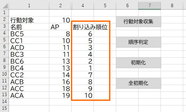 例2)ACDはBC5を割り込めるが、BC4とBC6が先に割り込むと最初に行動できない。