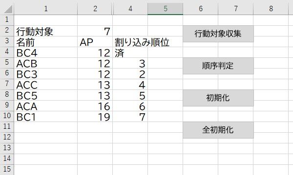 (2)行動順の決定結果