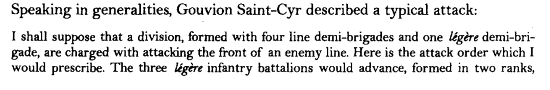 (2)p172、173に縦隊のよる攻撃の例としてグヴィオン・サン=シール元帥の記述がある。