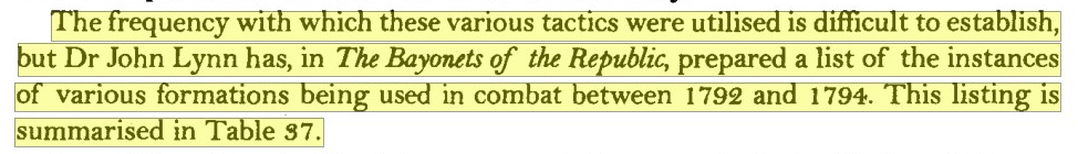ジョン・リン博士は『共和国の銃剣』の中で、1792年から1794年の間に戦闘で使用された
