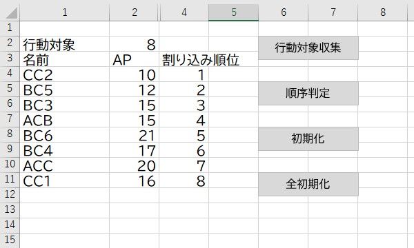 (2)行動順の決定結果