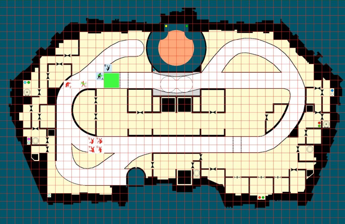 ・侵入者1は戦闘機を見つけ(下図の緑色塗り潰し領域)、乗員Aを早い射撃で意識喪失させた。