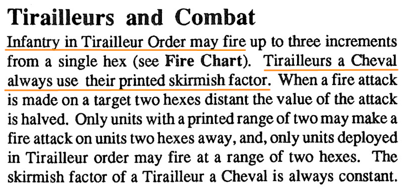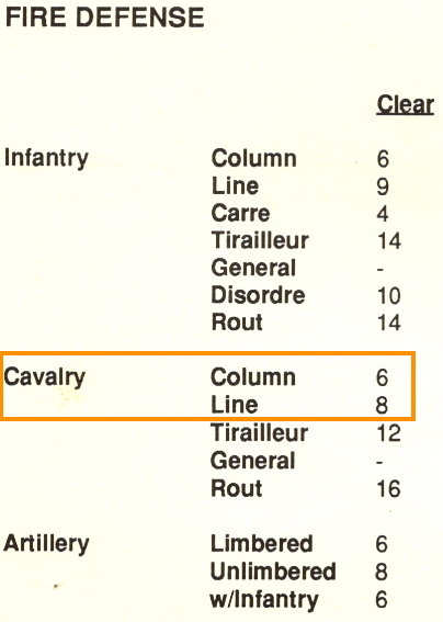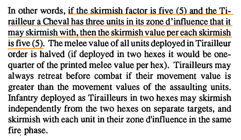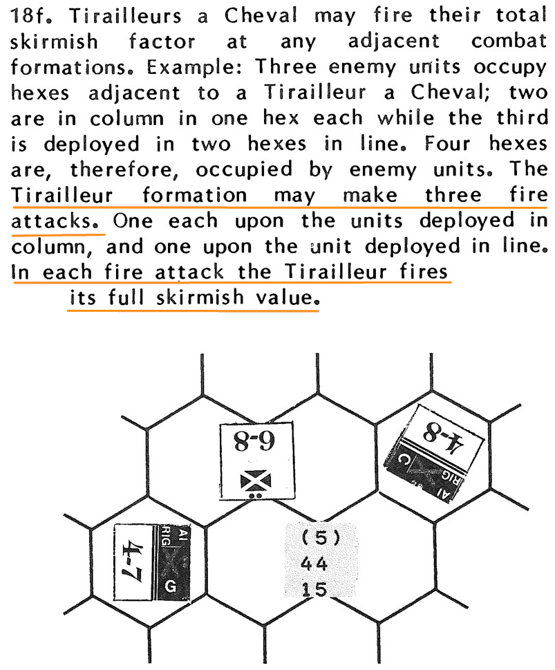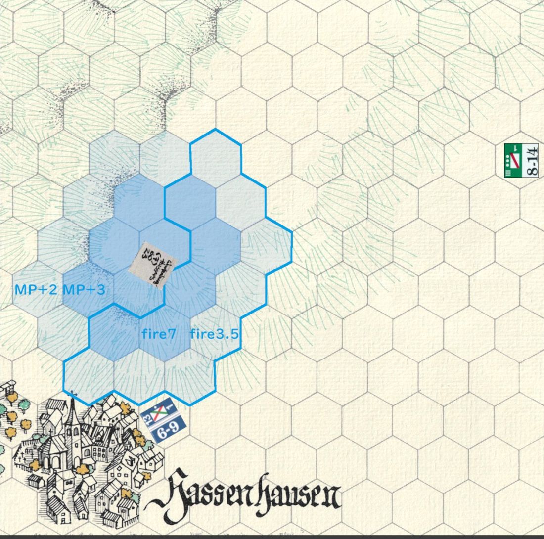 →フランス軍歩兵は移動制限範囲を抜けるのに8移動力を消費し、その間に3.5射撃力で2回の射撃を受ける。