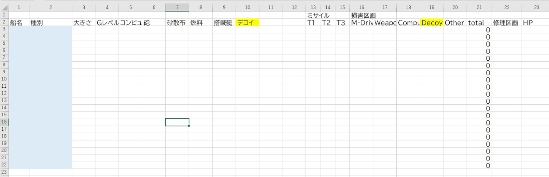 また、搭載艇を1列に集約した(種別を入力)。